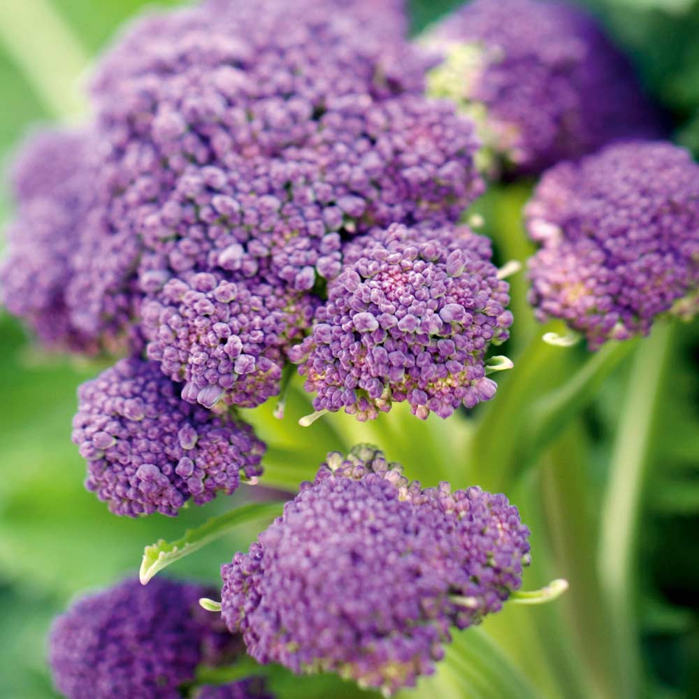 The floret clusters and leaves have a trademark violet hue with pistachio green undertones. Purple baby broccoli’s flavor is a concentration of nuttiness, peppery notes, subtle sweetness and the natural cruciferousness associated with all Brassica vegetables. It has a tender texture and a firm snappy bite.