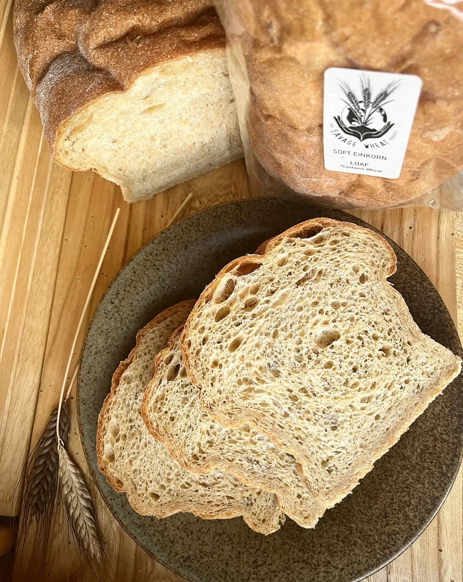 The Soft Einkorn Loaf is a versatile favorite. It is soft and approachable with a mix of yeast and sourdough fermentation. This results in a loaf that is soft, but has a warm flavor profile. The loaf lasts a week at room temperature, even though some prefer to store this loaf in the refrigerator. Best used for bread and butter, sandwiches, and French toast. This loaf comes whole in a compostable wrapper.